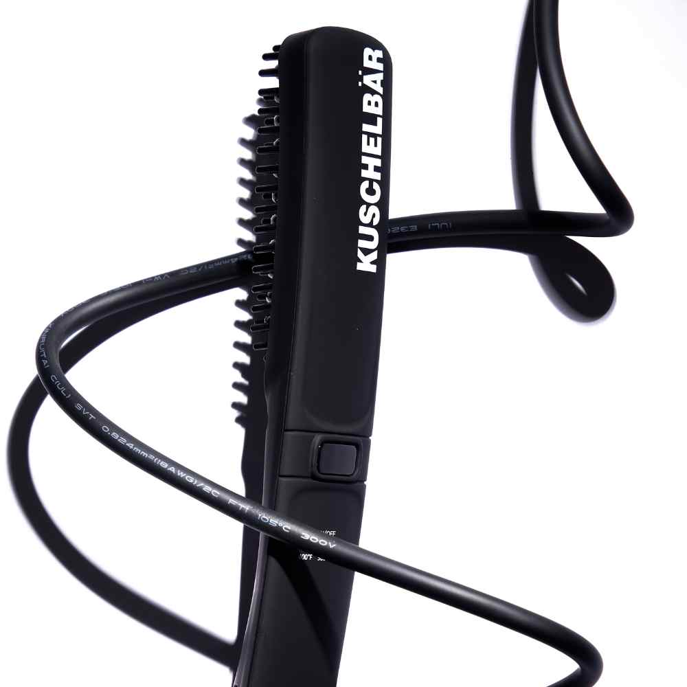 The Kuschelbär® Pro-Edition has all the amazing qualities of the original but with a few added benefits and features. Designed exclusively to soften and smooth both beard and head hair, The Kuschelbar Pro uses advanced technology, combining the functionality of a hairbrush with the power of heat.